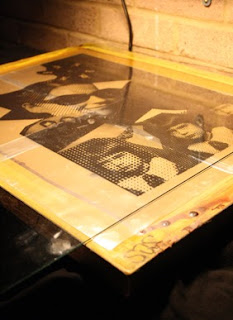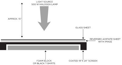 Screen, acetate film and glass under exposure lamp