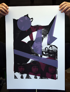 Detail of final artwork for the black colour using halftone pattern to simulate tonal areas. This effect is generated in Photoshop which I’ve used for my print